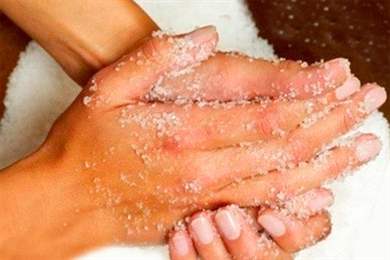 - Пилинг: смешайте 2 ст.л. морской соли, 1 каплю масла чайного дерева и 2 ст.л. кокосового (или растительного) масла. Массируйте по очереди одну руку другой, двигаясь по направлению от запястья к кончикам пальцев.