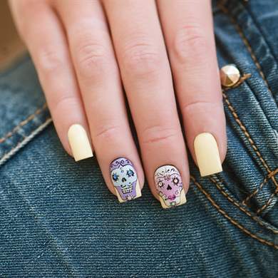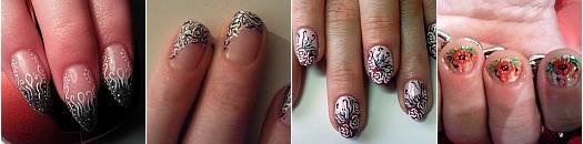 Очень моден также эффект фольги и художественная роспись: на одной ногтевой пластинке может быть несколько цветов. Те, кто предпочитают авангардный стиль, могут воспользоваться переводными картинками, которые наносятся на лак. Популярны нынче и стразы — маленькие блестящие камешки. Разумеется, на всех пальцах они будут смотреться вульгарно, но на одном — довольно оригинально и даже пикантно.