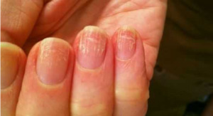 | НАРУШЕНИЕ СТРУКТУРЫ НОГТЯ | Ткани заметно утолщаются, деформируются, отмечается их ломкость. |