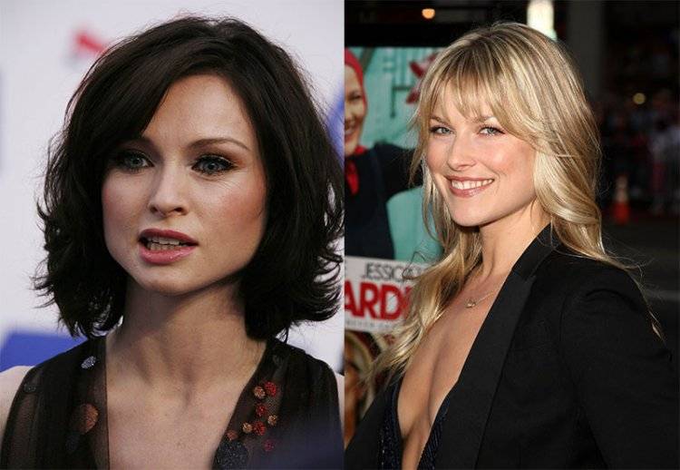 Для такой формы лучше всего подойдут густая челка с прямым срезом по линии бровей или густая челка, подстриженная чуть набок.