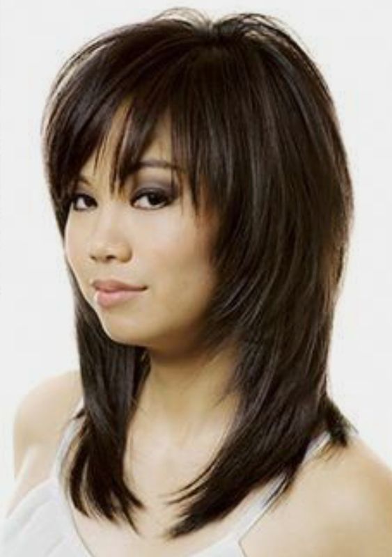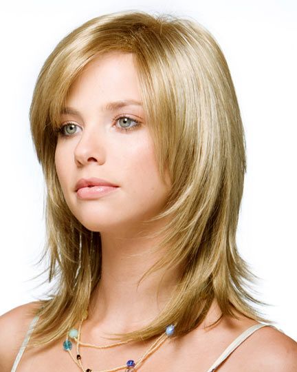 Такой форме лучше не делать удлиненную челку-шторку, особенно до скул, так как этим вы только еще больше расширите середину лица.