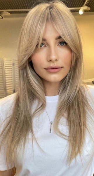 Лучше всего чёлка по бокам смотрится вместе с длинными волосами. На типичной русской красавице с классическими чертами лица такая чёлка будет просто великолепна