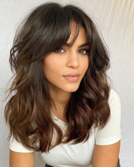 Для длинной шевелюры подходят разные виды челок: это и короткие, и удлиненные, с ровным или ассиметричным срезом. Если черты лица яркие и выразительные, стоит выбрать четкую геометрию, если образ романтичный – лучше остановиться на текстуре с неровными краями.