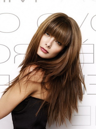 Многое зависит и от стрижки. Густая прямая челка дополняет прямые длинные волосы либо классическое каре. Если форма лица не близка к идеальному овалу, а волосы имеют среднюю густоту, можно остановиться на рваной, косой либо треугольной челке.