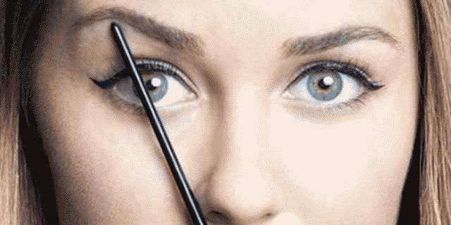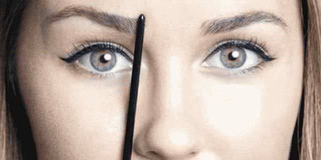 Далее нужно определить участок, откуда начинается рост волос бровей. Для этого вам понадобится палочка (можно перевернутую кисточку), ее следует приложить вдоль одной стороны носа и уголка глаза. То место, куда укажет кончик, и будет началом роста бровей.