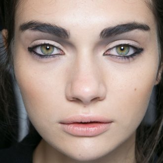 Взгляд обретает выразительность, естественные линии и формы становятся гармоничным дополнением трендового нюдового макияжа. Если брови широкие, нет нужды в ярком мейкапе глаз, можно обойтись минимумом туши, подводки, теней.