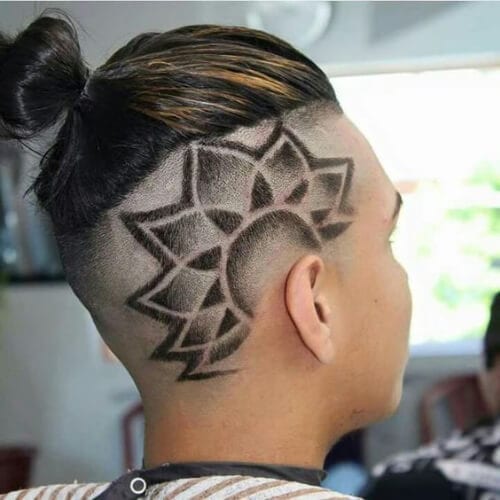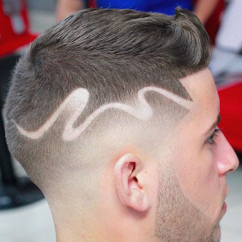 Некоторые мастера-цирюльники не используют для этого ножницы, а только край машинки. Таким образом создаются как хаир тату для мальчиков юного возраста, так и для солидных мужчин.