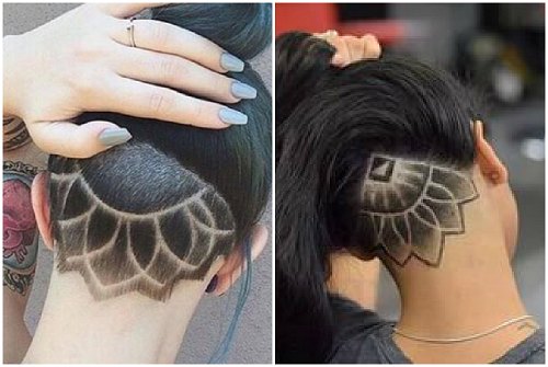 По большому счету, ограничений в плане выбора рисунка для хаир-тату у девушек нет вовсе. Если волосы длинные, рисунок уместно спрятать в области затылка, чтобы его легко можно было прятать под распущенными волосами или подчеркнуть, завязав, например, хвост. На коротких стрижках и стрижках средней длины уместны рисунки в височной части головы.