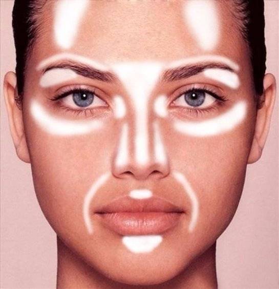 Хайлайтер можно наносить практически на всё лицо. Нужно только делать это правильно, руководствуясь схемами, представленными ниже.