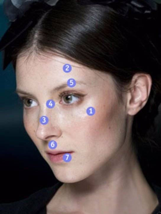 Как правильно наносить хайлайтер на лицо? Для это с самого начала обозначим зоны, на которых применяют данное косметическое средство. Это: