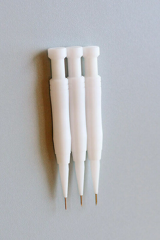 - Сначала производится забор донорского материала, а именно графтов, состоящих из нескольких волосяных фолликулов. Такой забор осуществляется с помощью механизированных аппаратных инструментов – FUE-панчей, которые представляют собой острые вращающиеся пробойники. По диаметру они превышают размер фолликулов, так что мелкие рубцы всё же останутся, но они будут почти незаметными.