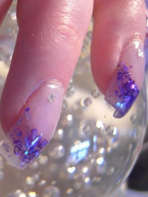 Как уже обозначалось, технология аквариумного дизайна ногтей предусматривает применение материалов для наращивания. Как создать аквариум при помощи акрила? Наиболее простой вариант создания аквариумного маникюра – это внедрение голографических блесток или же рисунка.