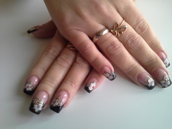 Об этом дизайне ногтей опубликовано множество материалов. Это цветная фольга, тонкое кружево, специализированные ткани и нити — разнообразие элементов поражает воображение. При желании под гель можно поместить небольшие ракушки. Простой французский маникюр можно сделать, используя, в частности, аквадизайн ногтей.