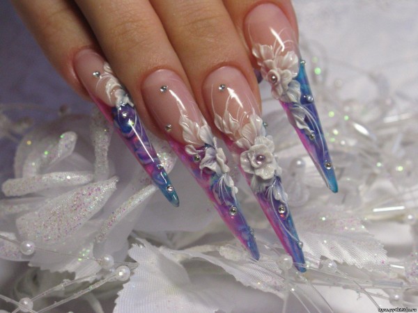 На таких ногтях очень удобно создавать дизайн в виде лепки и рисунка. Чем больше их длина, тем больше простор для реализации художественной фантазии.