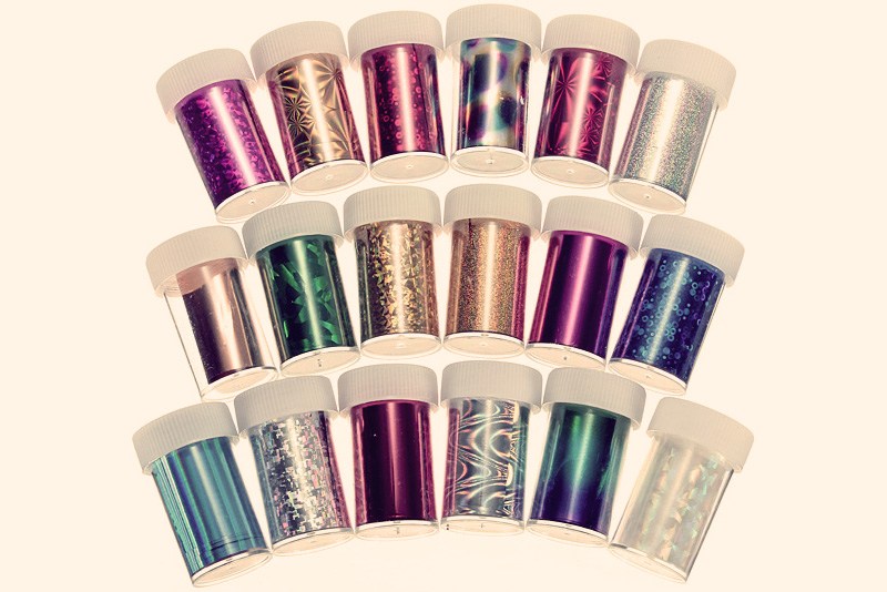 - Переводная фольга с отражающим эффектом. Ее цветовая гамма очень разнообразна, но для первого раза советуем ограничиться серебристым или золотистым цветом. Приобрести ее можно в магазинах, продающих товары для нейл арта или заказать в интернете.