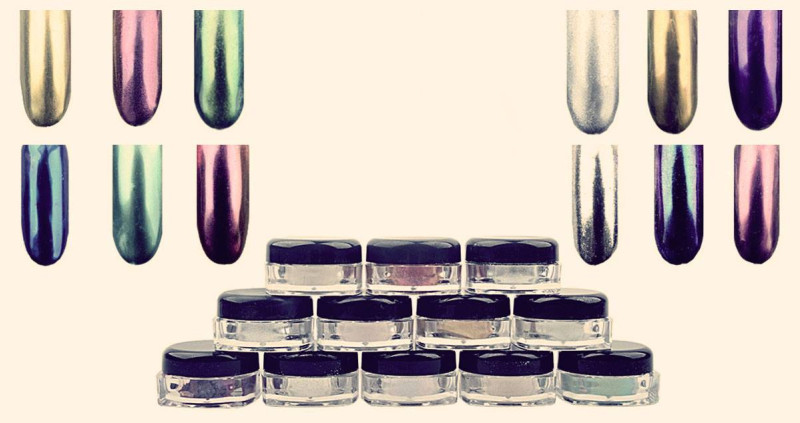 Металлический пигмент (блестки) представляет собой мельчайший порошок, который втирается в лак или в гель-лак для достижения зеркального эффекта.