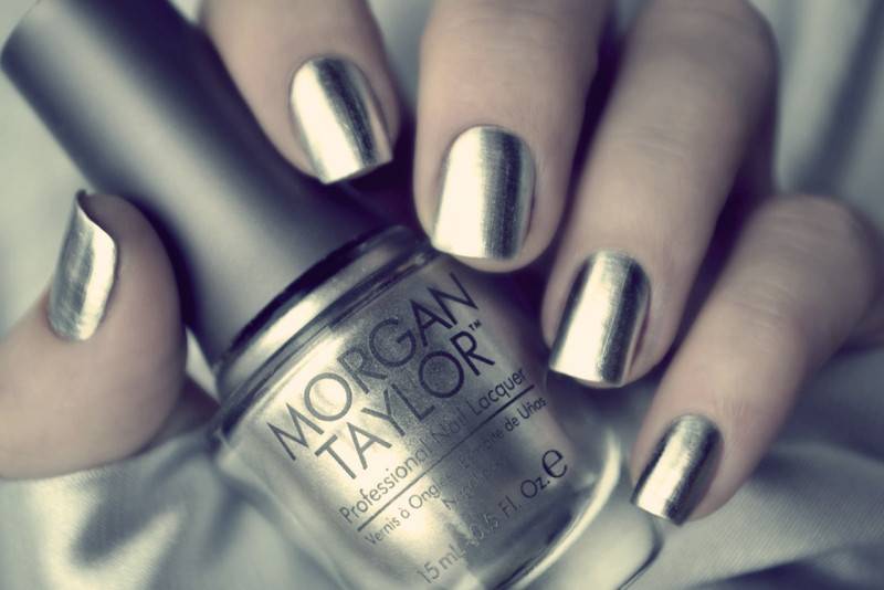 Такой продукт выпускают многие марки, например, Morgan Taylor. Чтобы добиться наилучшего результата, используйте специальную базу для зеркального маникюра. Наносим её на ногтевую пластину. Сушим. После этого в два-три уверенных движения наносим лак. Секрет именно в том, чтобы распределить лак быстро и с первой попытки, иначе он ляжет неровно, полосами. Но если это и случилось, всегда можно скрыть огрехи с помощью второго слоя лака. Покрытие станет более гладким, глянцевым. Закрепляем топом. Минус данного способа – зеркальные лаки подчёркивают все неровности ногтей.