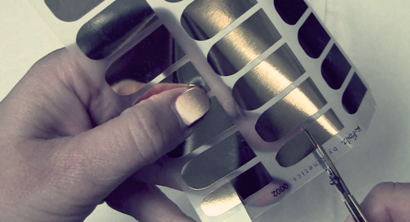 Наклейки – самый быстрый и простой способ добиться металлического блеска. Это практически готовое покрытие. Отделяем наклейку от бумажного основания и размещаем на ногте как можно ближе к кутикуле. Разглаживаем апельсиновой палочкой (плоской стороной), чтобы наклейка крепко сцепилась с ногтем, и покрываем топом. Готово! Минус – очень трудно снимать, так как наклейки отделяются фрагментами и оставляют после себя липкий слой.