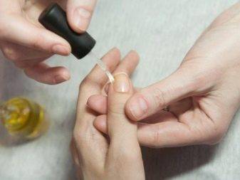 - Нанесите его точно так же, как первое средство, избегая контакта с кутикулой и околоногтевыми валиками.
