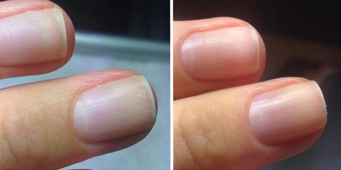 - результат заметен уже после первой процедуры, ноготки укрепляются и выглядят более здоровыми;