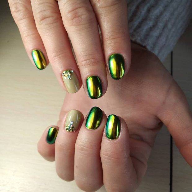 Этот дизайн 2021-2022 года подойдет любой моднице, так как выглядит он просто совершенно, при этом имеются много вариаций исполнения этого дизайна. Маникюр с фольгой поможет девушке сохранить свою индивидуальность и уникальность.