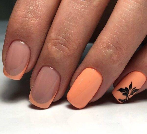 Поскольку персиковый ассоциируется с гармонией и женственностью, то трудно придумать для него более подходящий дизайн, чем френч.