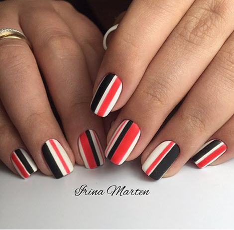 Полоски любого вида выглядят утонченно и интересно, существует много вариантов такого маникюра, смотрите лучшие идеи 2020 года на фото: