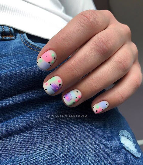 Как правило, такой вариант дизайна коротких ногтей становится особенно популярен в летний период года. Именно летом хочется как можно больше ярких красок, сочных оттенков, напоминающих солнечные закаты или спелые фрукты и ягоды.
