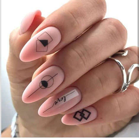 Даже без глянцевого блеска персиковый матовый нейл-арт очень эффектно смотрится на ногтях абсолютно разной длины. В этом сезоне в нейл-арте будут присутствовать мотивы логотипов, изображающие названия известных брендов, слоганы и крылатые фразы
