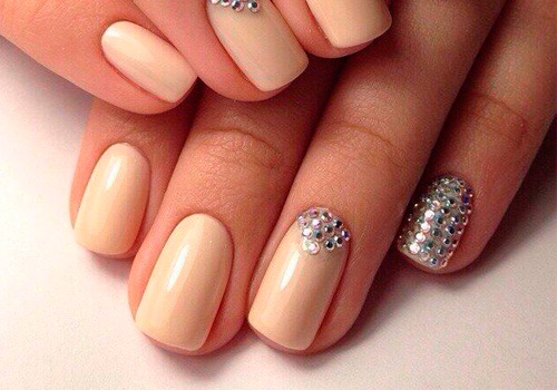Добавьте игривый и праздничный штрих к своему нейл-арту с помощью декоративных элементов. Вы можете использовать не только стразы, но и капли, крестики-нолики, бусины и броши. Чтобы дизайн был стильным и красивым, не наносите драгоценные камни более чем на 1-2 пальца на руке. Украшения будут смотреться более эффектно на гель-лаке светлого цвета. Персиковый лак для ногтей хорошо сочетается с белым, бежевым, голубым и розовым.