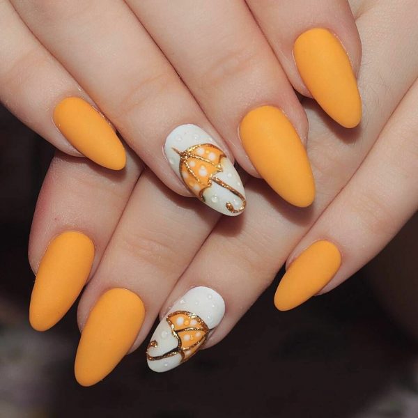 Разумеется, для осеннего сезона будет актуален дизайн в золотом цвете на белом, бордовом или черном покрытии. Это своего рода классика, которая давно не подвергается сомнению или критике.