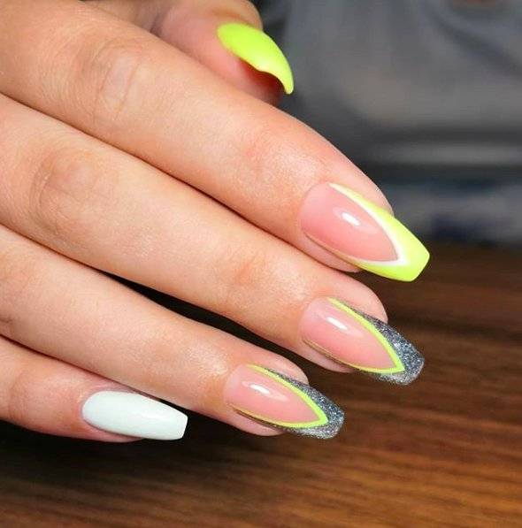 Идеальным на лето станет градиентный модный маникюр, который можно воссоздать в разноцветных растяжках цвета в вертикальной, горизонтальной, геометрической манере.