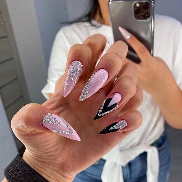 Дизайн ногтей 2023: Стразы, пудра, блестки