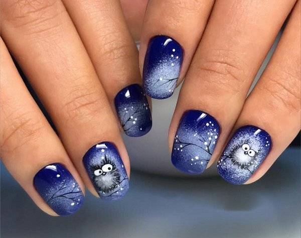 Одни из новинок модного маникюра для зимы 2022 считается исполнения рисунка на одной руке в ином варианте, чем на другой, например: на правой руке нарисовать новогоднюю елочку, а на другой — елочные шары или на одной руке — снеговики, на другой — олени.