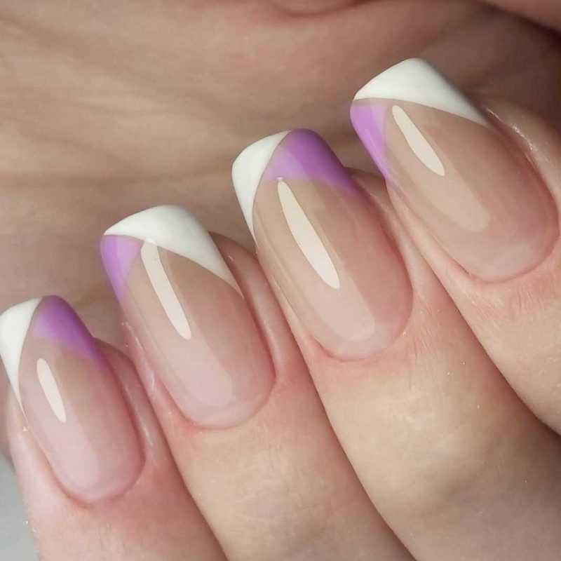 Классический французский и лунный маникюр всегда являются трендовыми, а его исполнение в фиолетово-сиреневой палитре придаст ноготкам особого шарма.