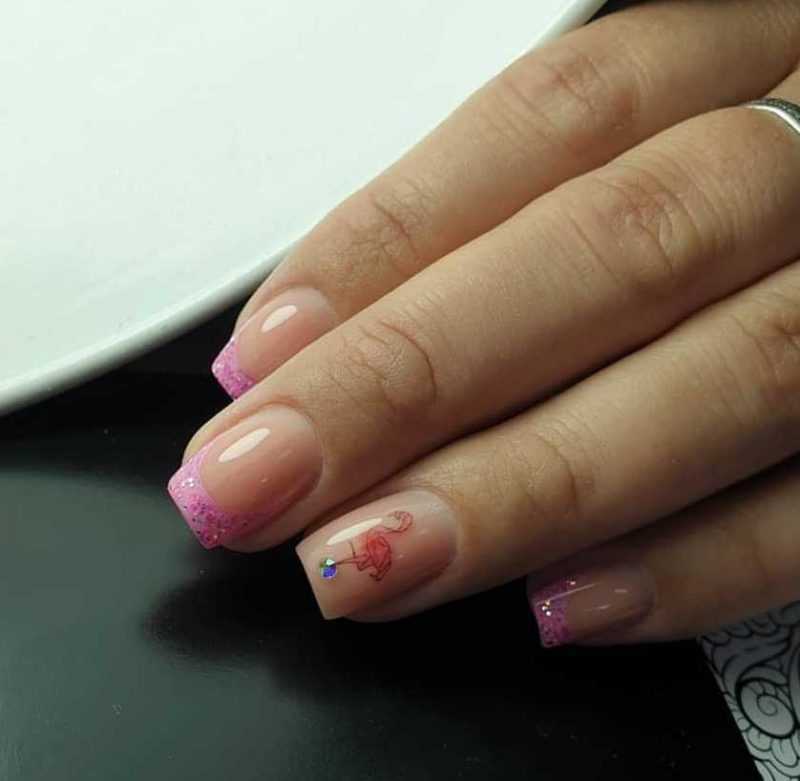 Сегодня просто бум на французский цвет – выбор оттенков огромен. Не менее важным является французский в сиреневых тонах с блестками. Дизайн ногтей, сочетающий белые кончики, сиреневый градиент и базовое покрытие того же цвета, исключительно шикарен. Разве это не произведение нейл-арта?