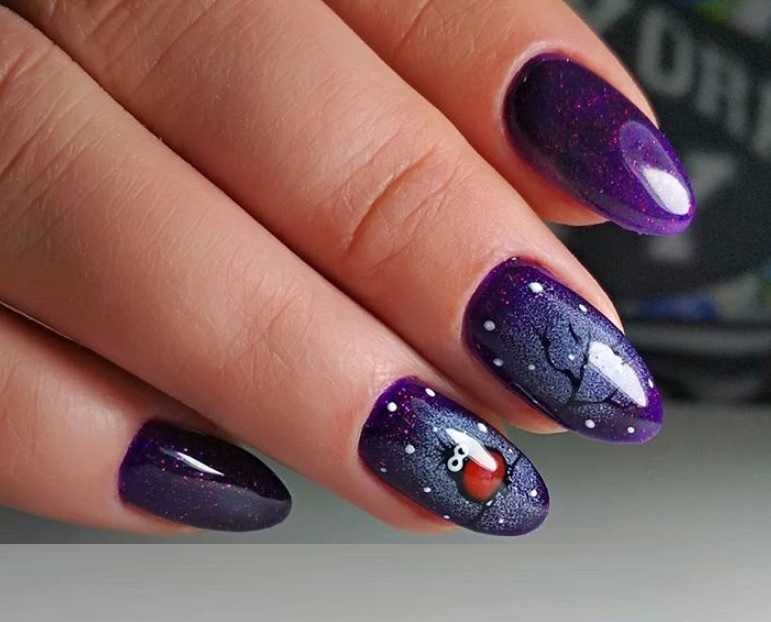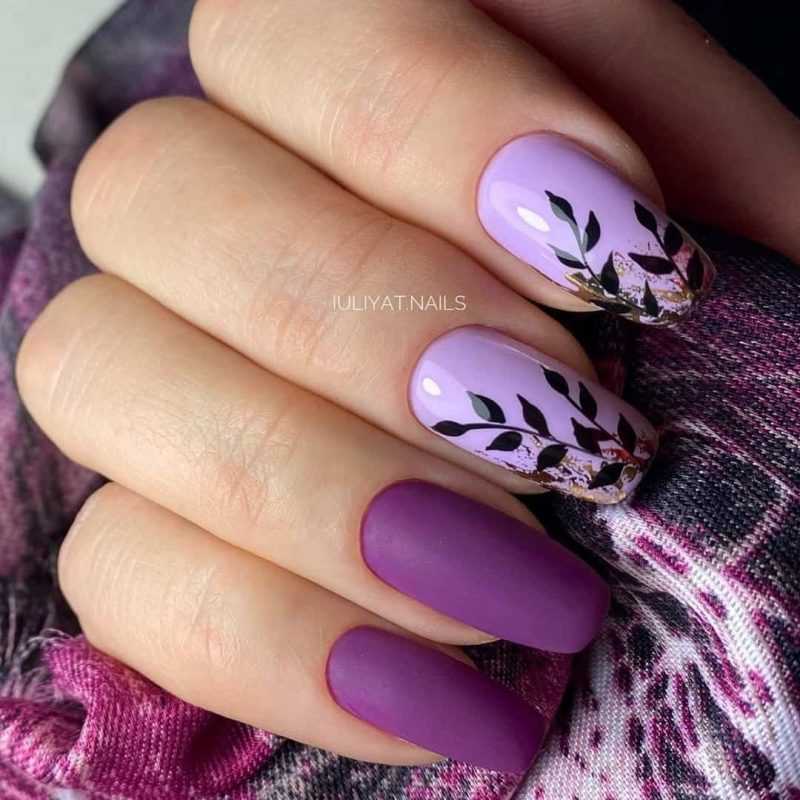 Фиолетовый маникюр с рисунком 2021 фото новинки