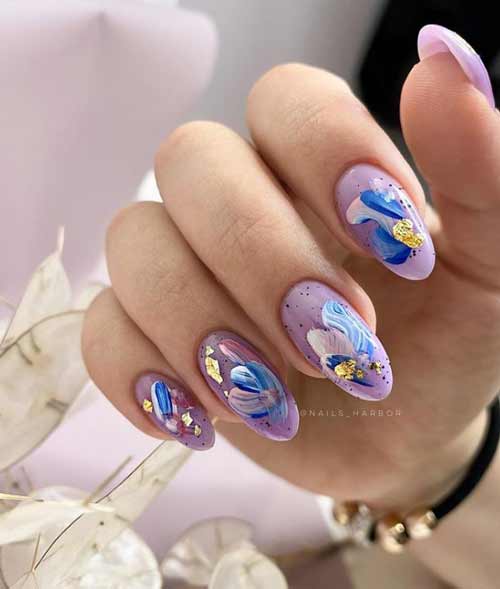В 2021 году фольга для золочения используется для создания самых горячих дизайнов в мире. Это украшение хорошо смотрится на сиреневых ногтях независимо от времени года. Фольгу можно использовать как модное дополнение к дизайнам со штрихами, акварелью, слайдерами, цветочными и перепелиными принтами.
