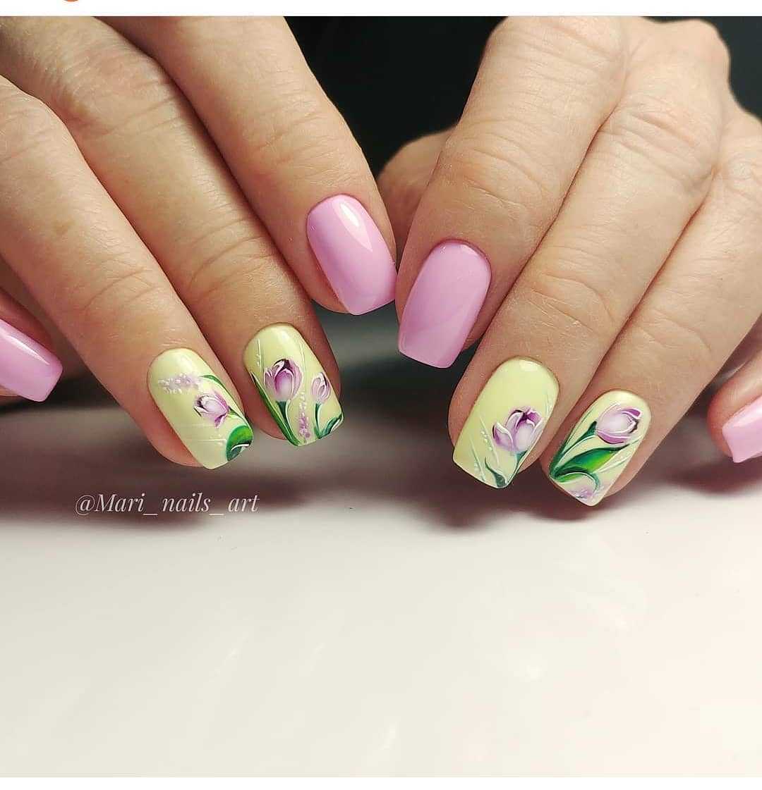 Что может лучше подчеркнуть сиреневый фон ваших ногтей? Вы можете создать ненавязчивый и нежный дизайн с помощью быстрой техники, модной молнии или узора тиснения. Хотите, чтобы цветок покрывал весь ноготь? А может быть, перо и надпись? В любом случае, для создания красивого дизайна потребуется всего несколько движений.