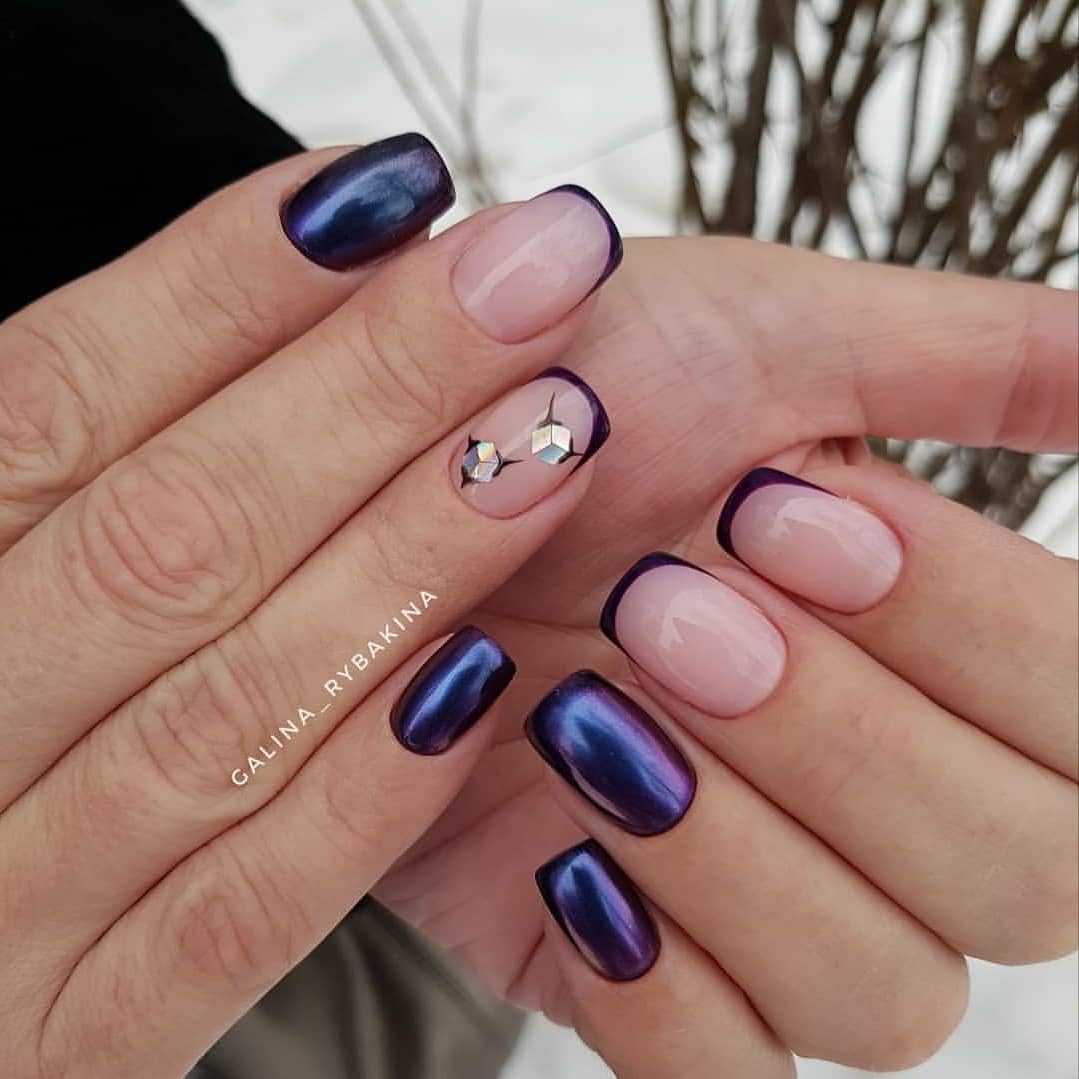 Классический французский и лунный маникюр всегда являются трендовыми, а его исполнение в фиолетово-сиреневой палитре придаст ноготкам особого шарма.