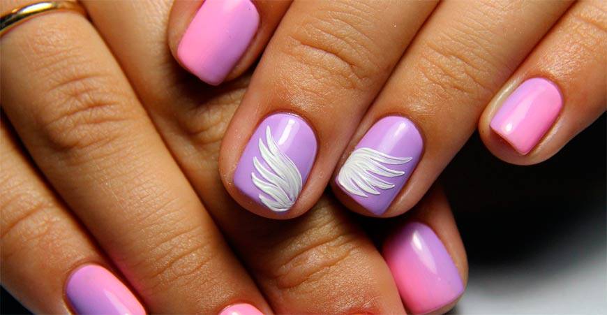 Подобное сочетание можно уверенно назвать одним из самых распространённых. При этом не стоит думать, что популярность означает обыденность. Наоборот, тандем розового и сиреневого предоставляет модницам множество идей маникюра и всегда смотрится свежо. Среди актуальных предложений удивительные переходы в стиле градиент, которые можно создавать не только на каждой ногтевой пластине, но и от ноготка к ноготку, использование акриловой пудры с характерным оттенком и абстрактные изображения. Весьма эффектно смотрится в розово-сиреневом исполнении комбинирование однотонного нейл-арта с элементами «негативного пространства» и многие другие идеи.
