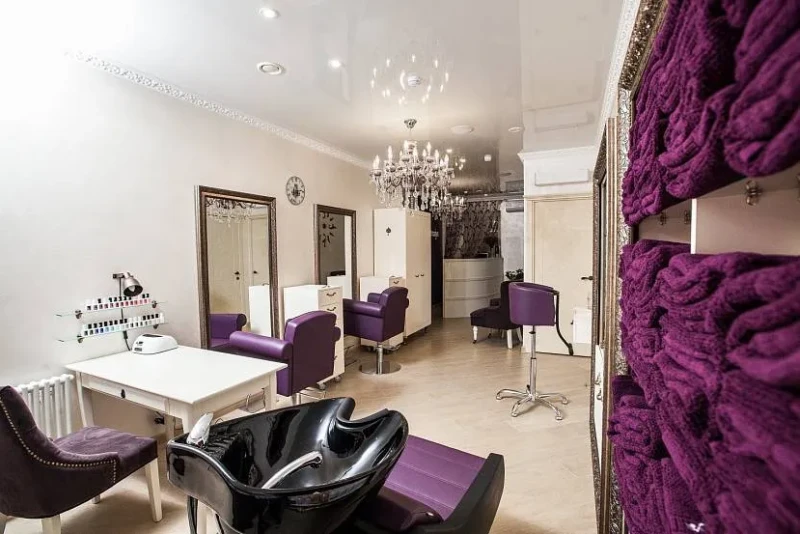 Шикарные королевские оттенки в интерьере салона красотыИсточник hhss.ru