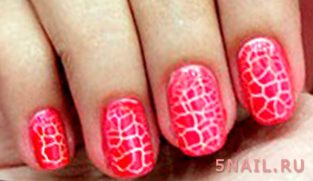 - Паутина. Маникюр с растрескивающимся покрытием образует на ногтях интересный узор из маленьких трещинок, внешне напоминающих паутину. Еще одно название такого нейл арта- Spider- кракелюр.