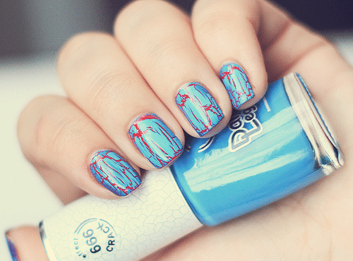 От того, как вы нанесете трескающийся нейл-дизайн и будет зависеть вид трещин.