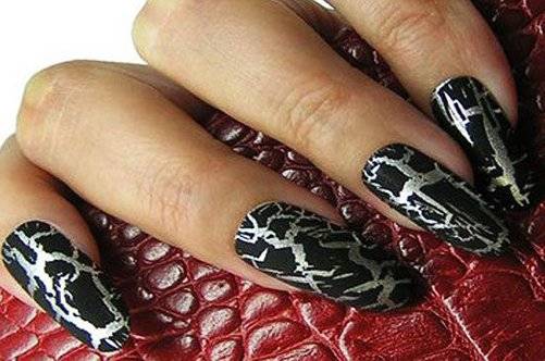 - Питон. При создании такого дизайна кракелюрный лак для ногтей при высыхании образует имитацию кожи питона.