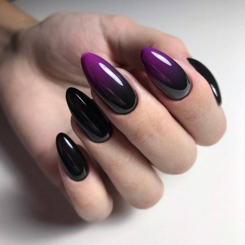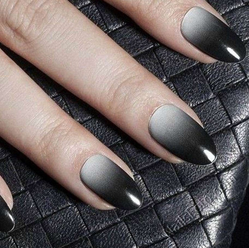 Этот дизайн получил популярность пару лет тому назад. Не все останавливают свой выбор на таком экстравагантном способе украшения ногтей. Однако Инста-ленты мастеров подтверждают: маникюр с чёрным градиентом становится востребованным.