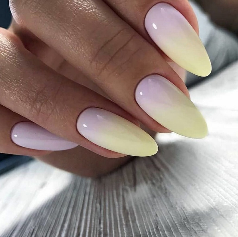 Вы можете выбрать любые цвета лака для создания градиентного маникюра. Но мастера нейл арта выделяют и актуальные оттенки в сезоне 2023.
