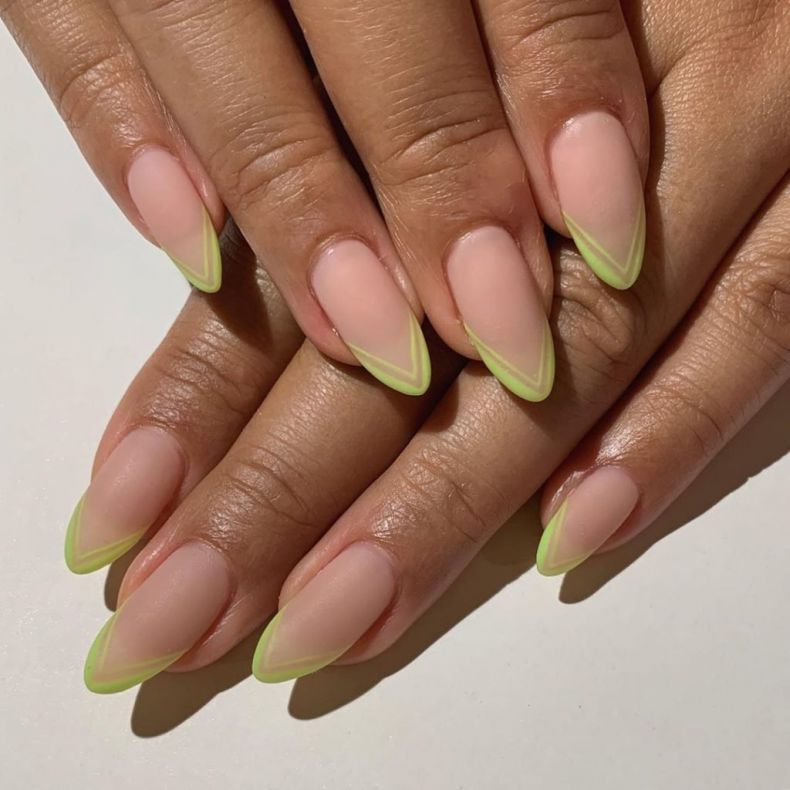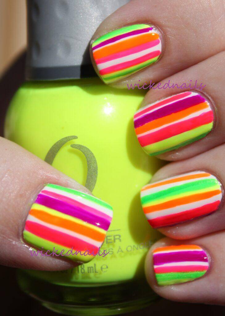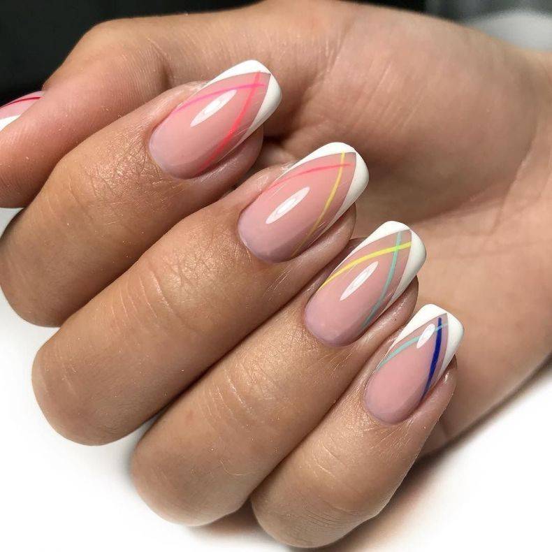 Сочные и неоновые цвета никогда не утратят популярности в нейл-дизайне. Линии таких оттенков разнообразят оформление ноготков и сделают его нескучным, по-настоящему летним.