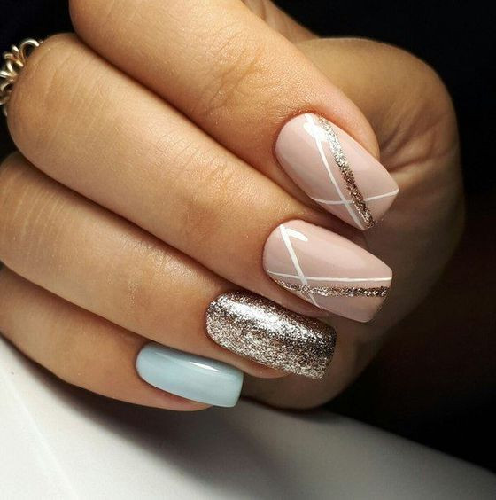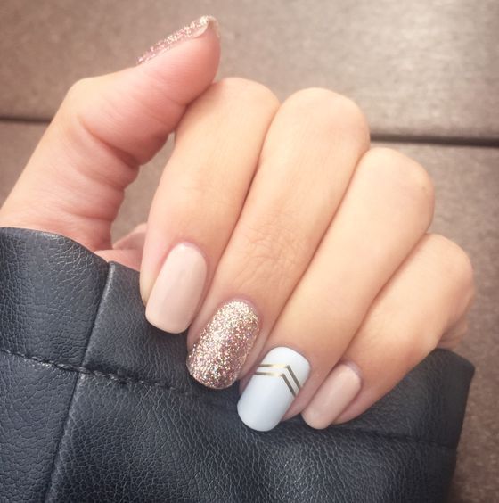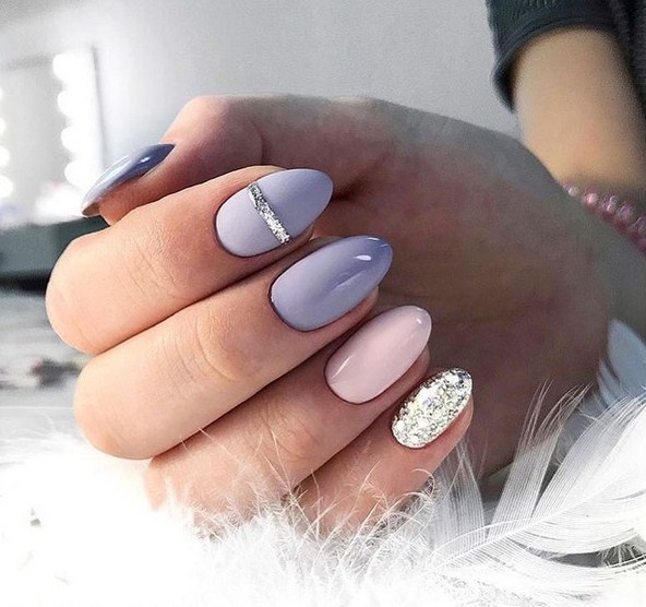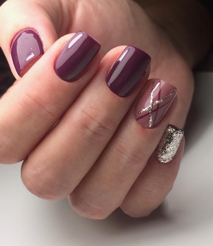 Для создания сверкающего образа подойдет маникюр с блестками, нанесенными в качестве акцентов на один или несколько ноготков. Отличной парой ему станут металлизированные втирки и фольга.