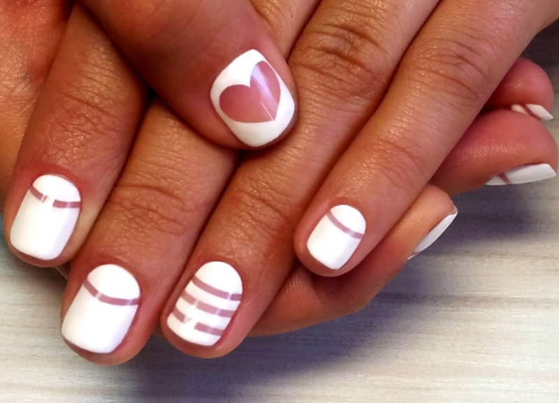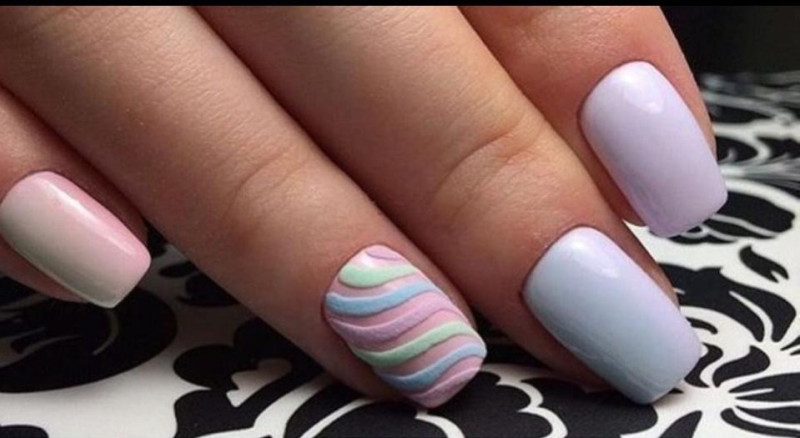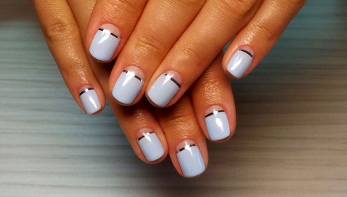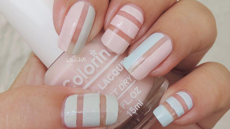 Модный маникюр в пастельных тонах можно разнообразить полосками, при этом дизайн останется таким же минималистичным. Сочетаться ленты будут с актуальными в этом сезоне оттенками: нюдовыми, серыми, лиловыми, розовыми, персиковыми, голубыми.